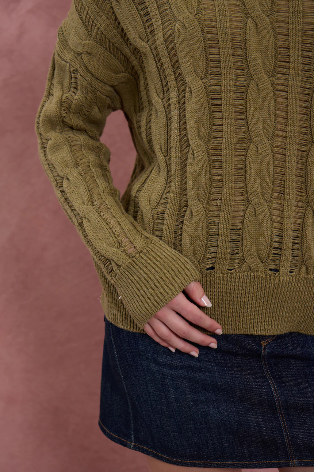 Sweater con diseño de trenzas verticales, terminaciones de rib en puños y ruedo.Composición:50% ALGODON -50% VISCOSA